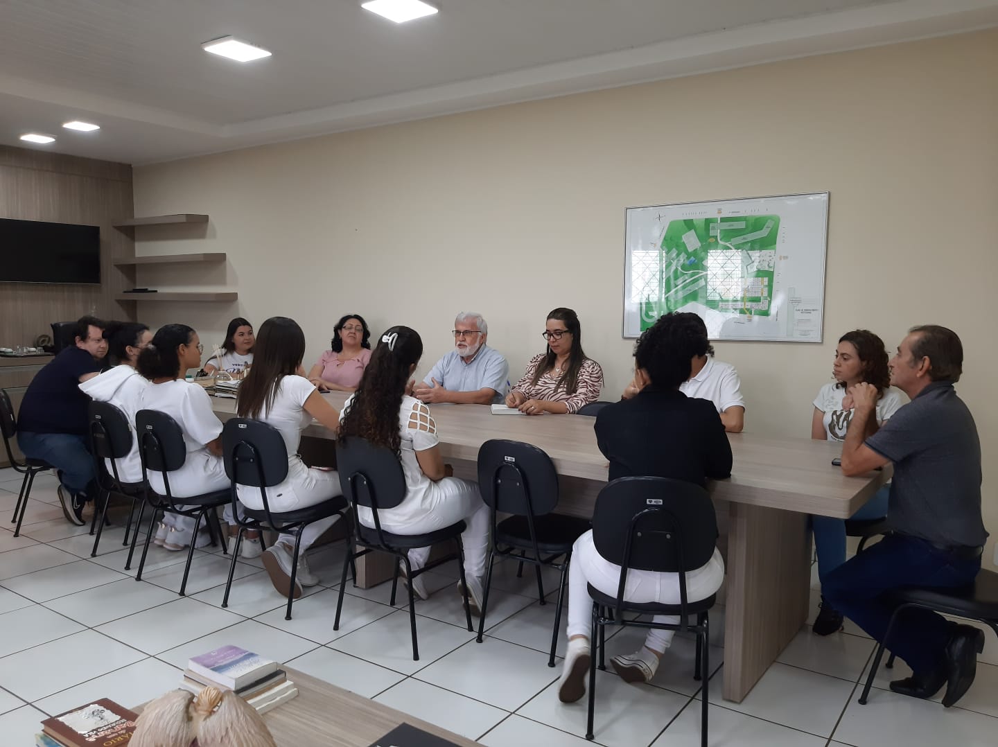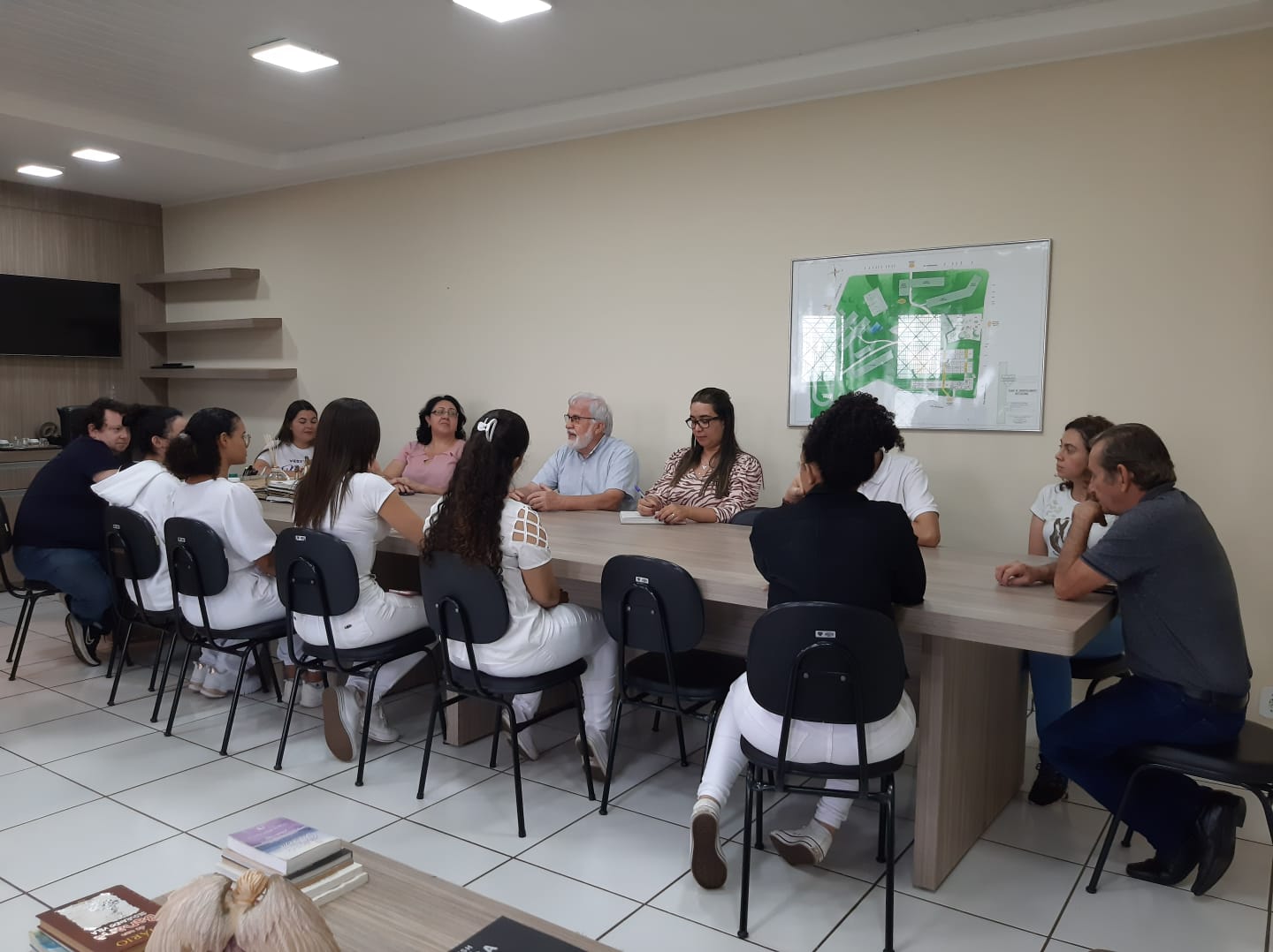Estavam presentes na reunião os idealizadores da criação do pastoral no UNIVAR, sendo eles, professores do curso de odontologia, acadêmicas do curso, o Padre Waldomiro e os representantes da IES: Gersileide Paulino a Pró-reitora acadêmica, Eduardo Afonso o Pró-reitor administrativo e Janaina Ferreira a Diretora administrativa.