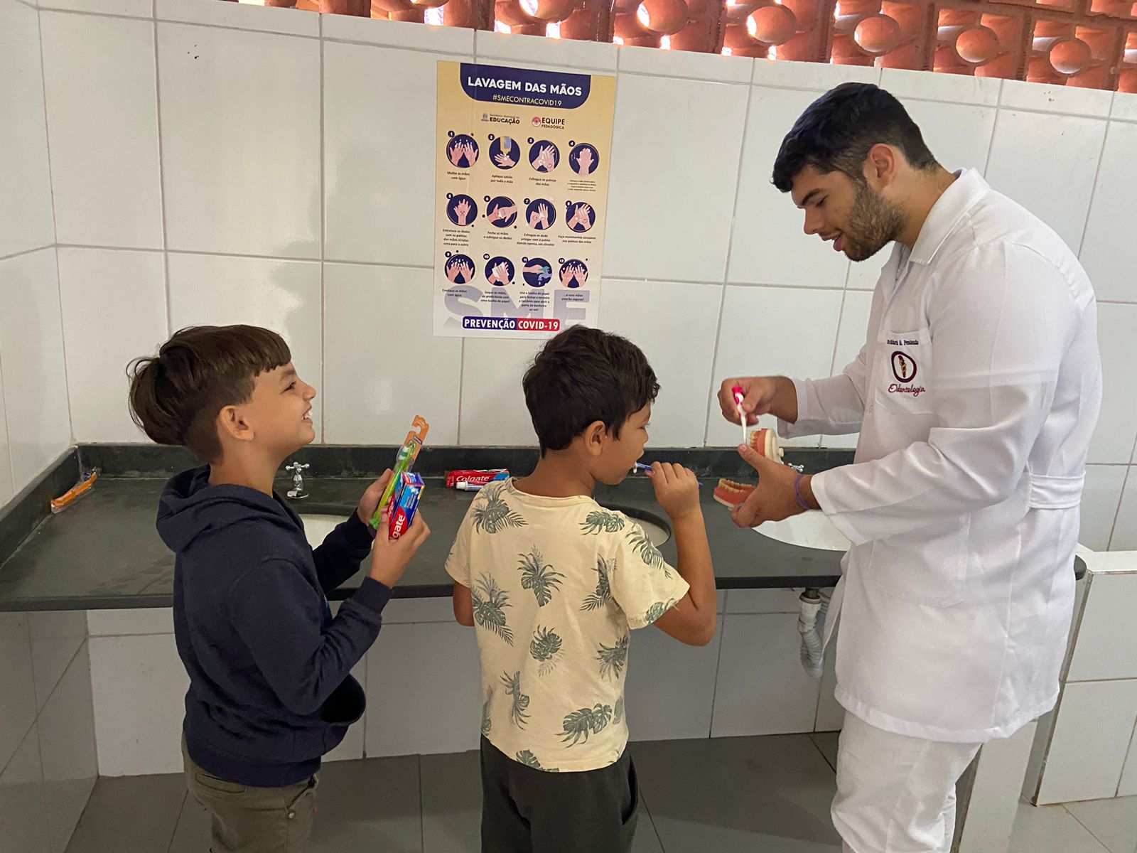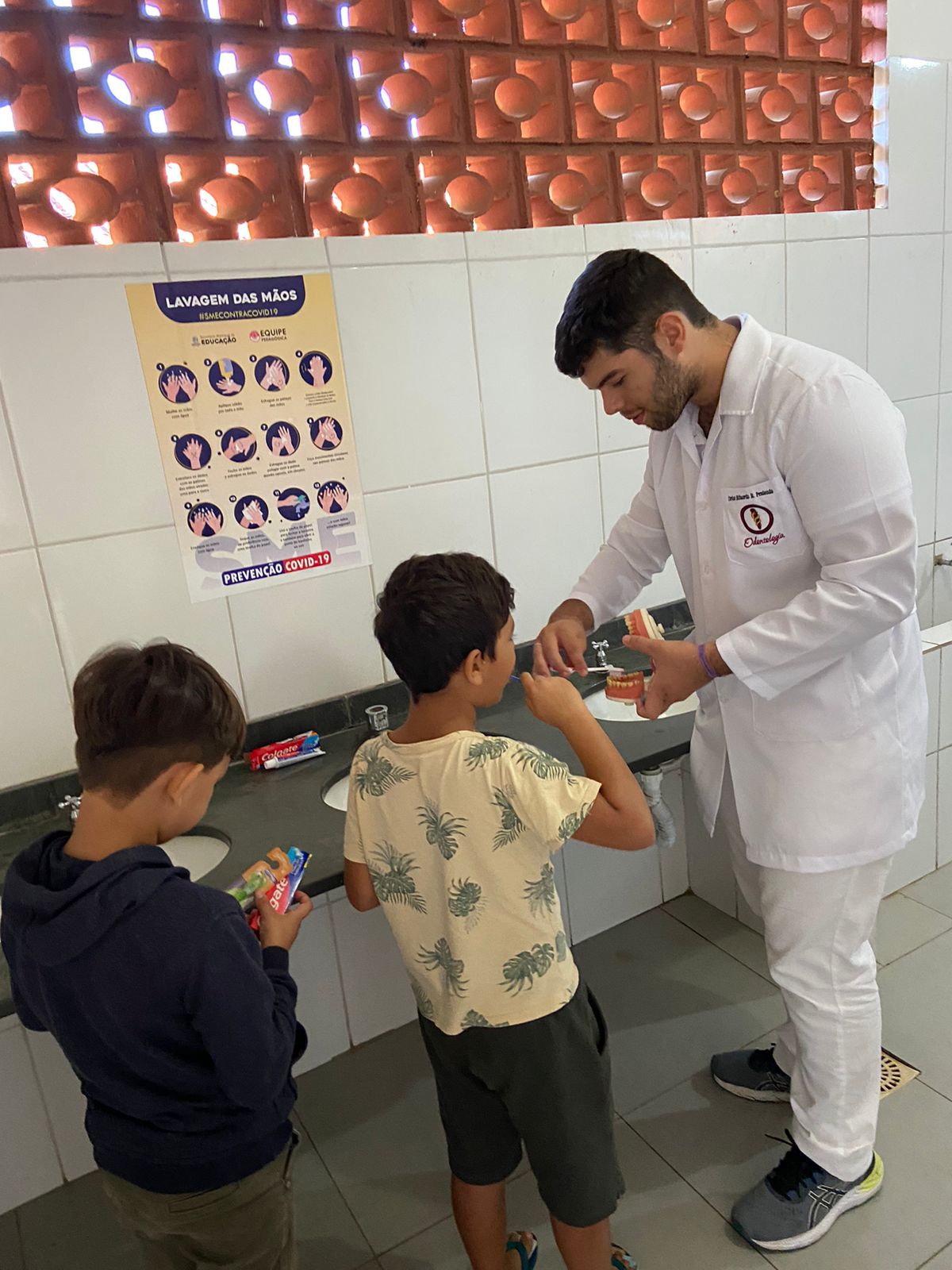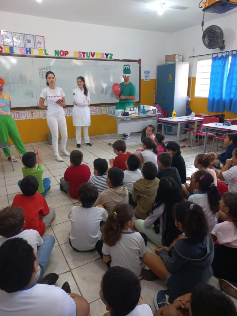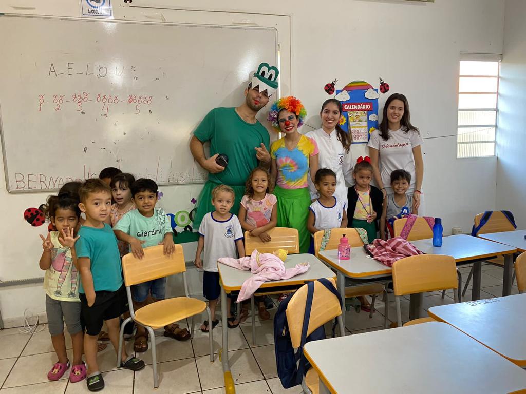 Os acadêmicos do 3º semestre do curso de odontologia, supervisionados pela coordenadora e professora do curso, Natalina Galdeano, realizaram nos dias 27/04, 28/04 e 04/05 uma palestra no Centro Municipal de Educação Básica Arlinda Gomes da Silva.
