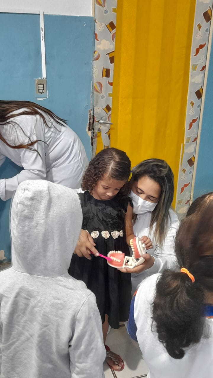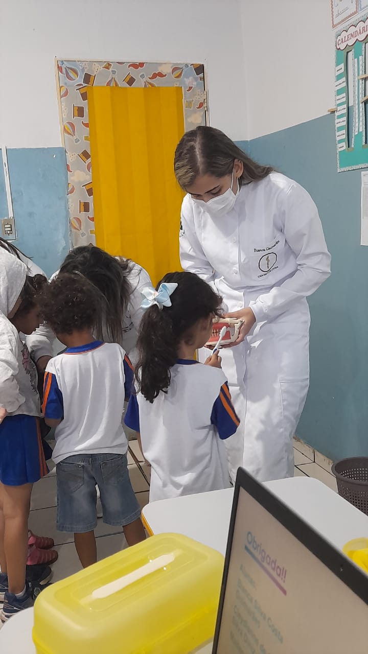 A palestra foi realizada no período matutino e vespertino e contou com a presença de crianças de 3 a 6 anos. Durante a ação as crianças aprenderam a técnica correta de escovação de forma dinâmica, por meio de materiais lúdicos, vídeos e slides interativos. Houve também a entrega de kits de higiene bucal, contendo: pasta, escova dental e um mini certificado de participação e aprendizagem sobre técnicas de escovação.