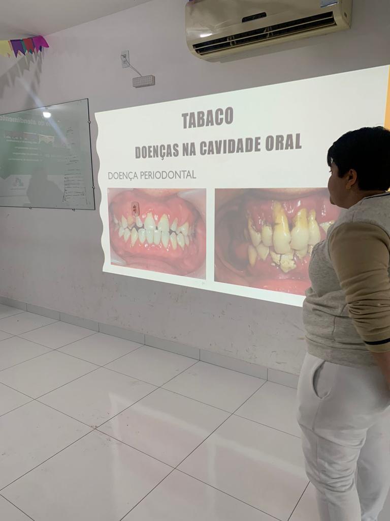 O tema abordado na palestra foi Tabagismo e Periodontite. Segundo a professora Ana Laura o projeto visa capacitar os profissionais da saúde que trabalham nas Unidades Básicas de Saúde – UBS, tais como: enfermeiros, dentistas, técnico em enfermagem, agentes de saúde entre outros.