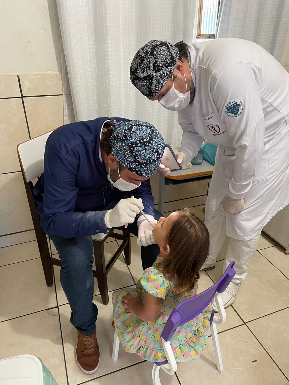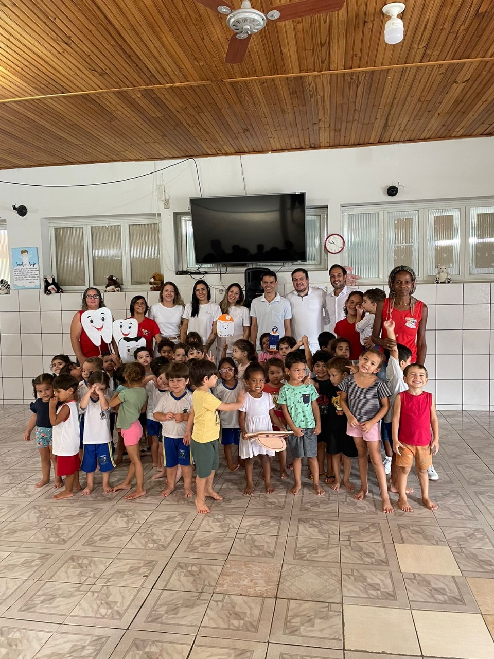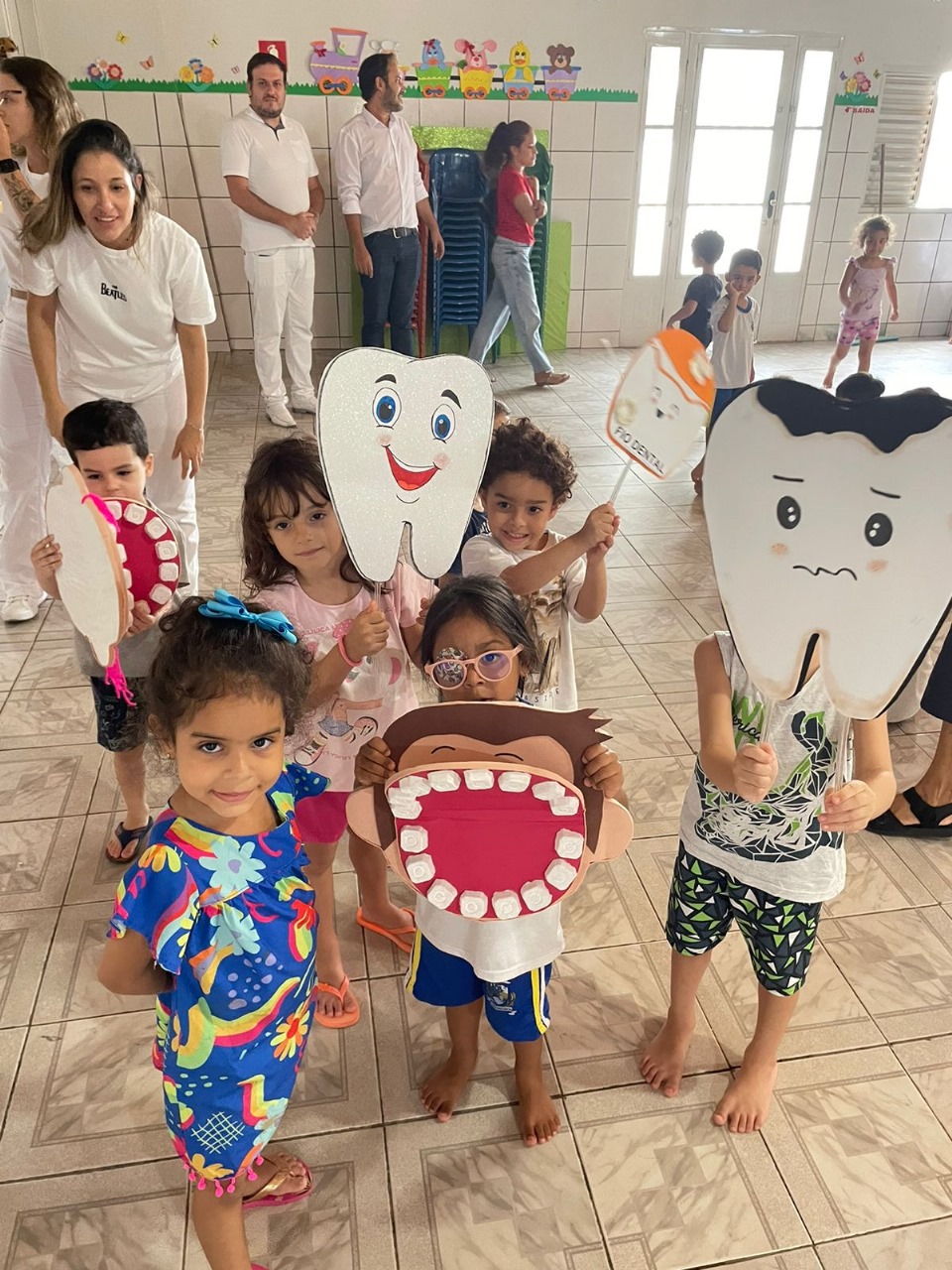 Além das atividades lúdicas, foram distribuídos kits de higiene bucal, contendo escova adequada para a idade e dentifrício fluoretado. Uma sala reservada proporcionou aos pais uma cartilha com informações sobre a avaliação e orientações para continuar estimulando a prática de bons cuidados bucais em casa.