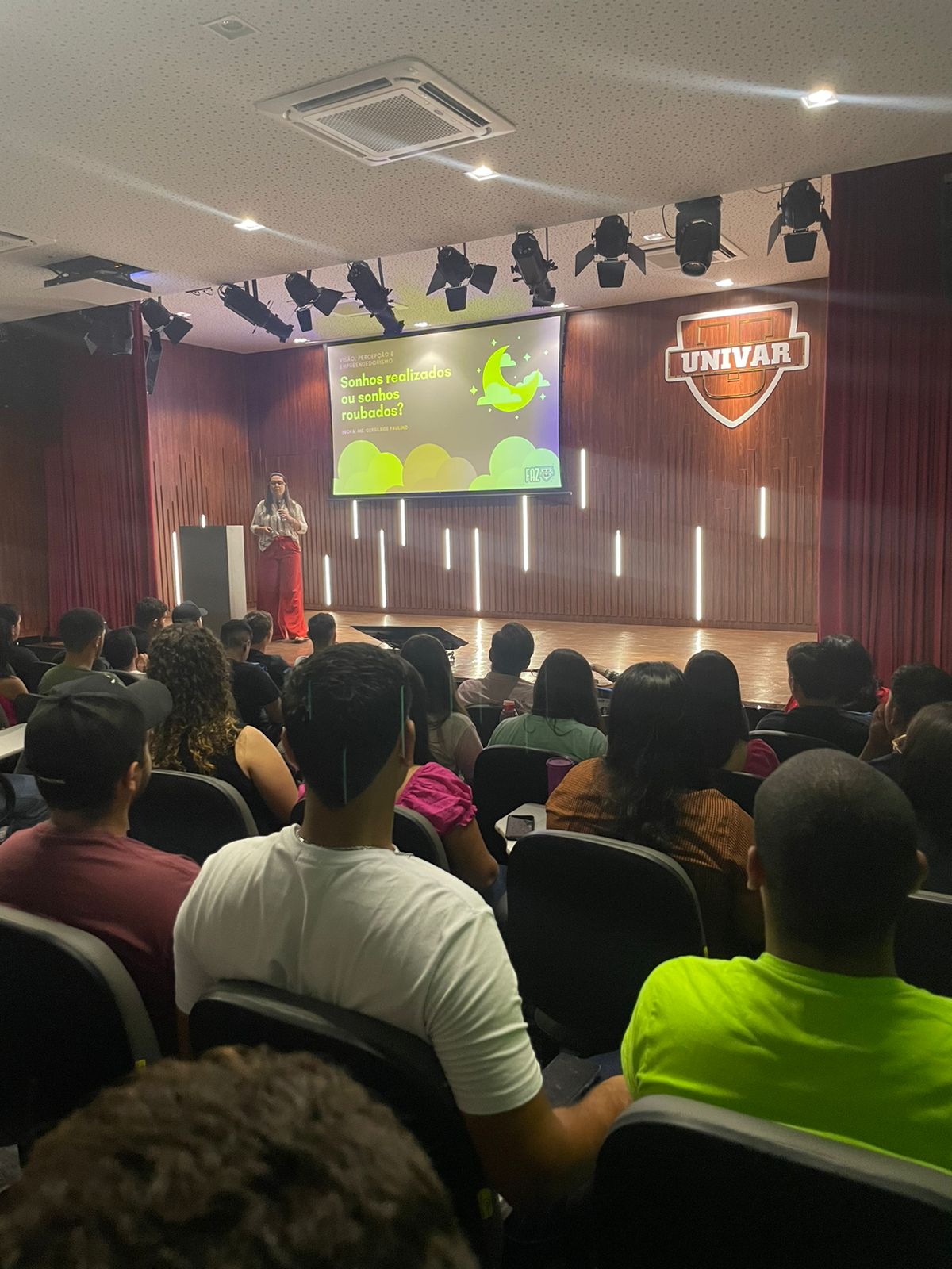 Um dos pontos altos do acolhimento foi a palestra ministrada pela pró-reitora acadêmica do UNIVAR, Gersileide Paulino, intitulada “Sonhos roubados ou Sonhos realizados?”. Durante a palestra, Paulino destacou a importância de os estudantes manterem seus sonhos vivos e focarem em suas metas, mesmo diante dos desafios que podem surgir ao longo da jornada acadêmica.