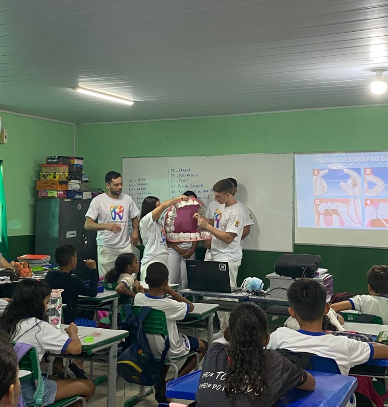 Na manhã do dia 21/03, a Escola Municipal São Jorge, localizada em Pontal do Araguaia – MT, recebeu o projeto “Odontologia na Comunidade: MotivAÇÃO”, uma iniciativa liderada pela Professora de Odontopediatria e Ortodontia, Ana Laura Valadão, juntamente com alunos do 9º semestre de odontologia do UNIVAR. O objetivo do evento era promover a conscientização sobre a importância da correta higienização bucal e prevenção da cárie dentária entre alunos de 9 a 12 anos.