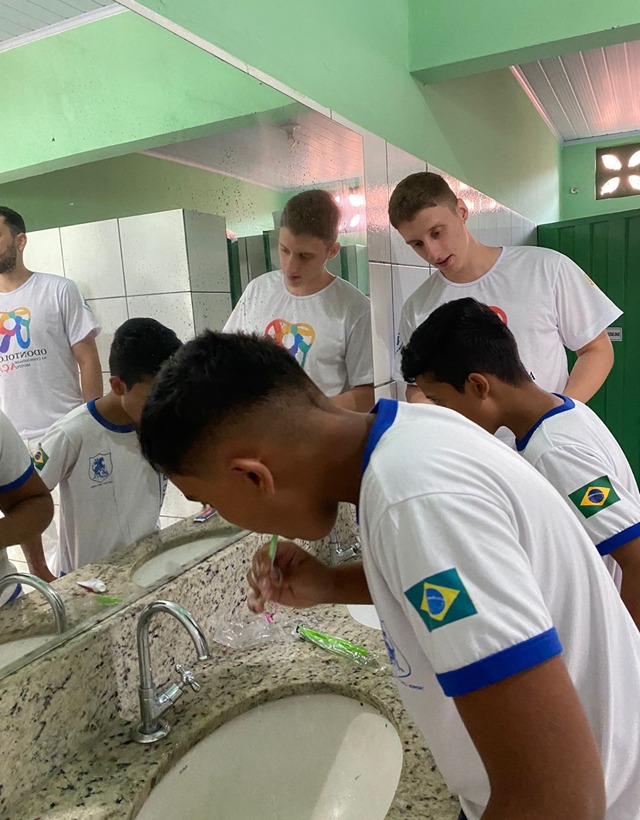 Um dos momentos mais marcantes do evento foi a entrega dos kits de higiene, contendo pasta de dente e escova dental, seguida pela escovação supervisionada. Essa prática reforçou os ensinamentos transmitidos durante as palestras e dinâmicas, garantindo que os acadêmicos pudessem colocar em prática as técnicas aprendidas.