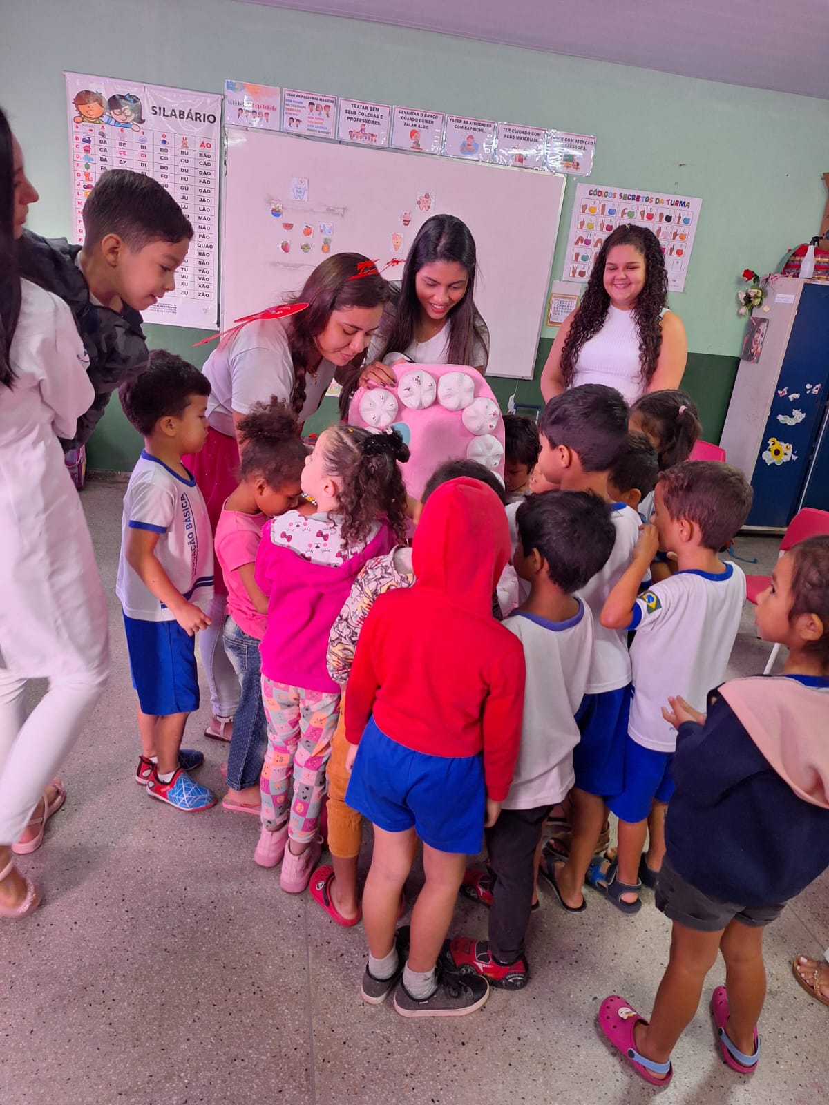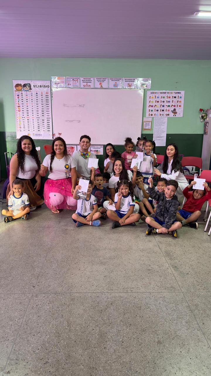 No último dia 19 de abril, os corredores da Escola Municipal São Jorge, no Pontal do Araguaia-MT, foram preenchidos com risos e aprendizado durante o projeto “Criança consciente, sorriso contente”. Coordenado por um grupo de acadêmicos do 3º semestre do UNIVAR, sob a supervisão da docente Me. Natalina Galdeano Abud Chaud, o projeto teve como objetivo ensinar crianças de 5 anos sobre a importância da saúde bucal de maneira divertida e interativa.