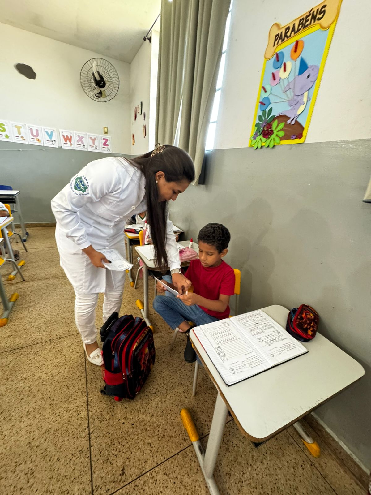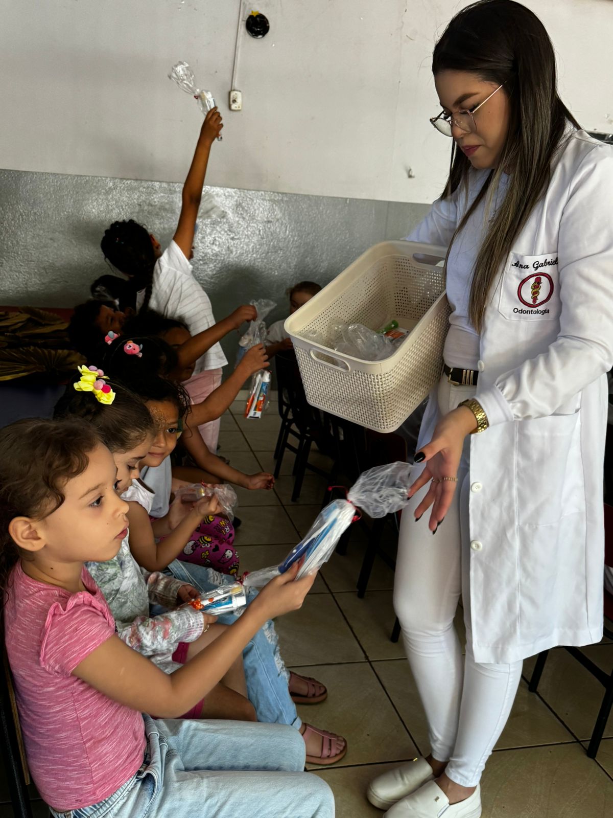 No dia 03/05, sob a supervisão da docente Me. Natalina Galdeano Abud Chaud, os acadêmicos Ana Gabriela Camilo de Oliveira e Kauany Guedes Serra, do 3º semestre, embarcaram em uma missão educativa na Escola Dimas Nasser, localizada em Bom Jardim de Goiás, GO. O projeto, intitulado “Meus Dentinhos”, tem como objetivo principal incentivar a higiene bucal infantil e ensinar sobre a alimentação correta desde a infância.