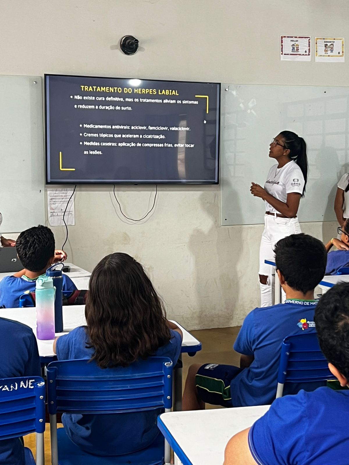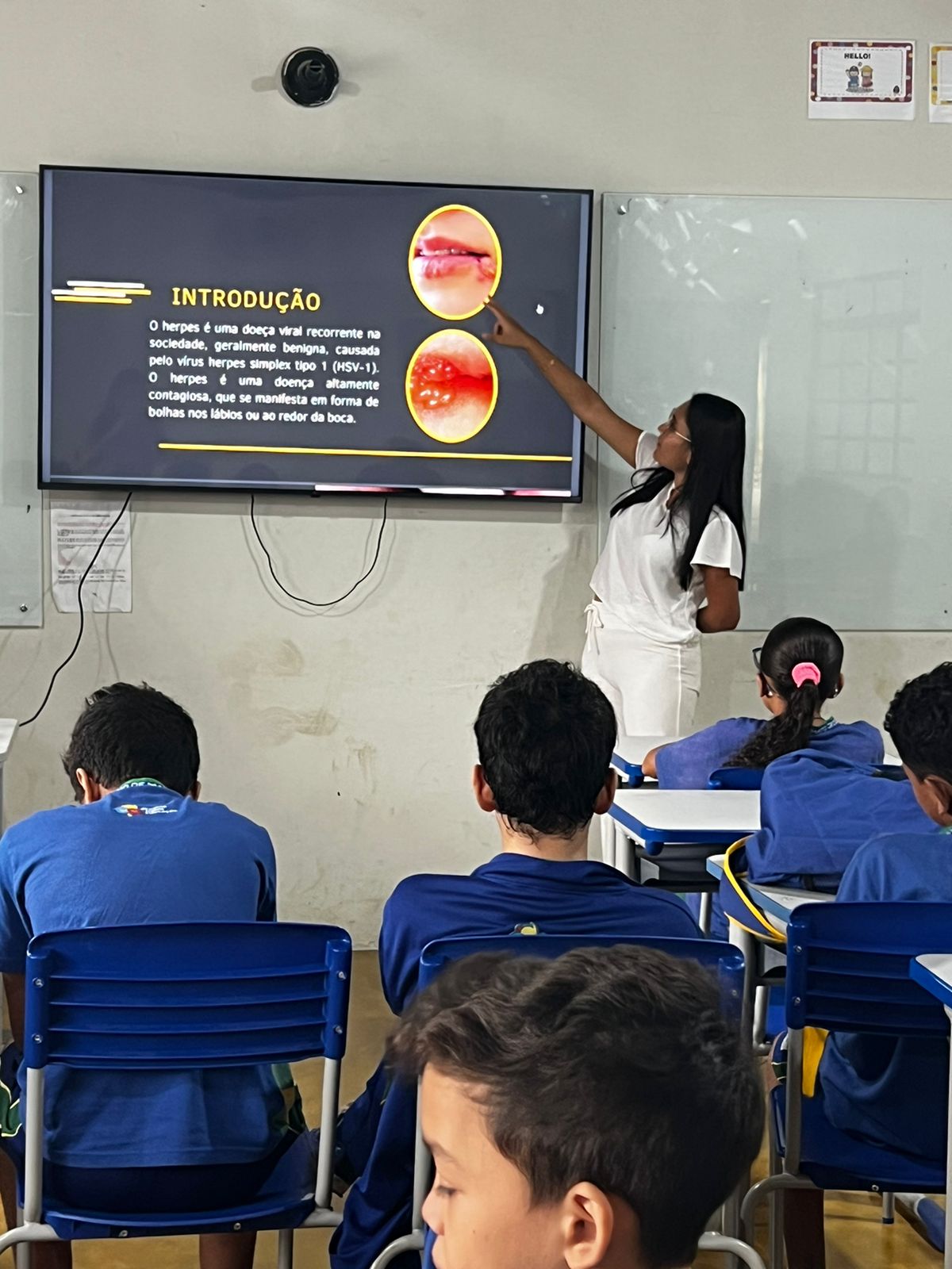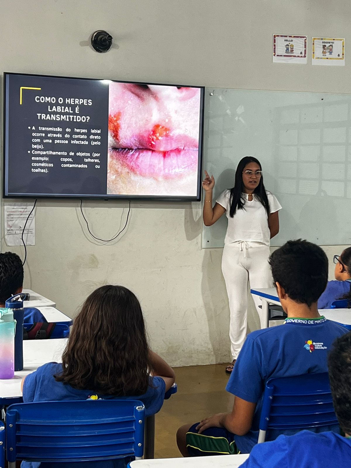 Durante a palestra, as acadêmicas destacaram os modos de transmissão, sintomas e formas de prevenção da mononucleose e herpes labial. A mononucleose é causada pelo vírus Epstein-Barr, enquanto o herpes labial é transmitido pelo vírus herpes simples (HSV-1). A conscientização sobre esses vírus é fundamental, especialmente entre os jovens, que muitas vezes desconhecem os riscos. Além da parte teórica, as estudantes também abordaram tratamentos disponíveis e como evitar a propagação dessas infecções.