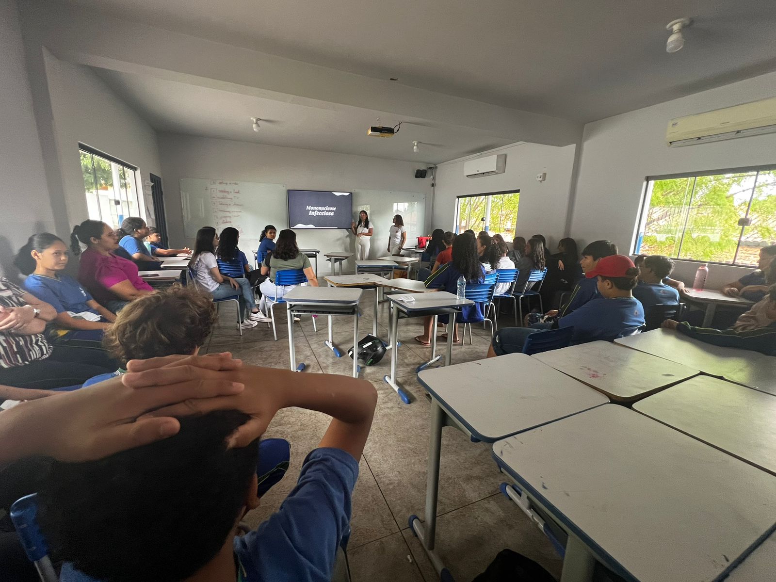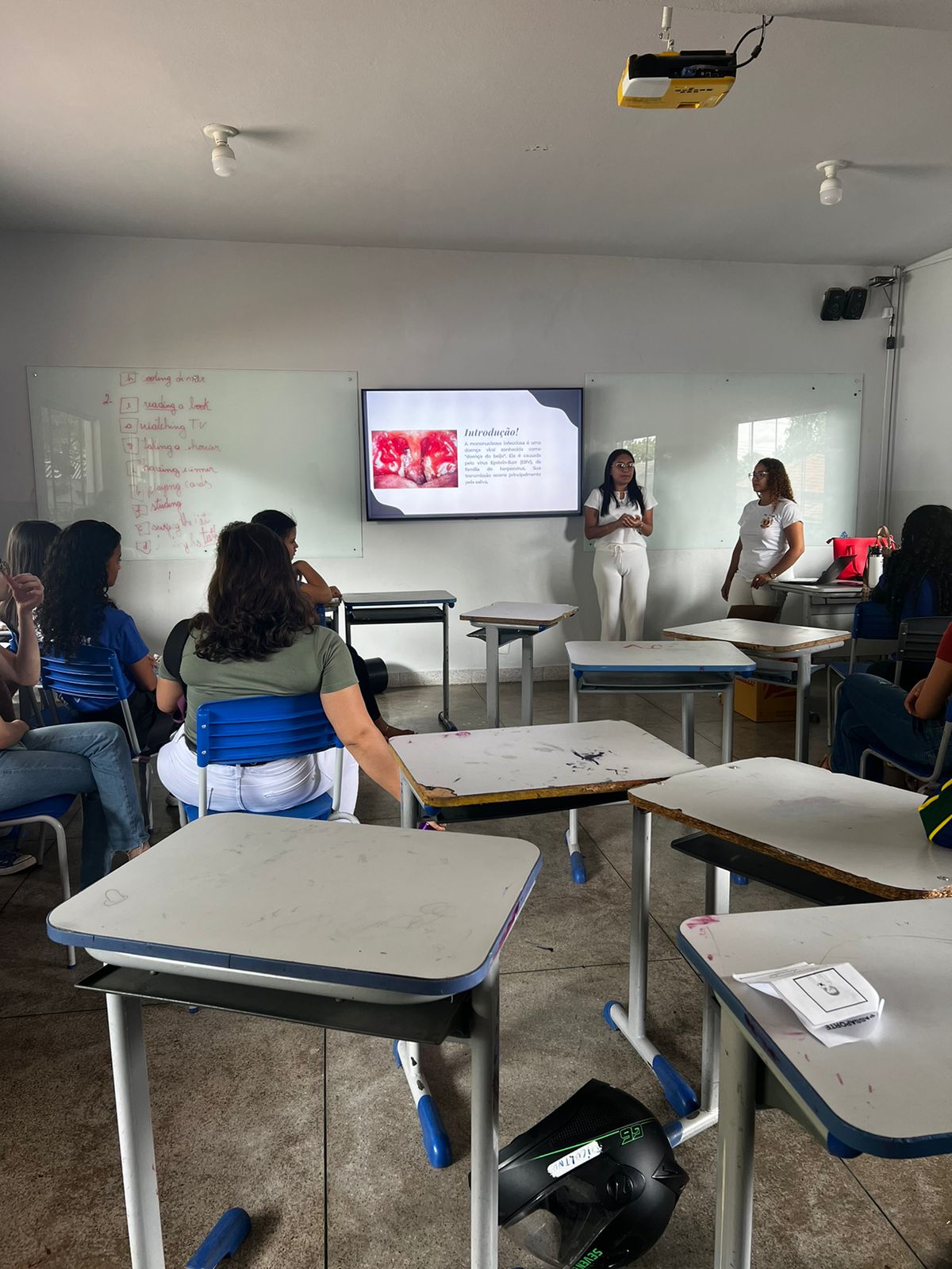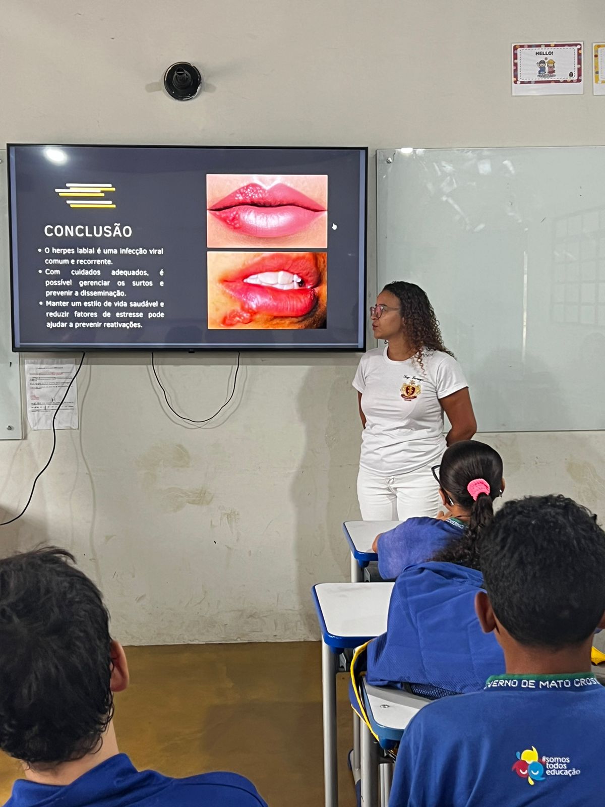 Durante a palestra, as acadêmicas destacaram os modos de transmissão, sintomas e formas de prevenção da mononucleose e herpes labial. A mononucleose é causada pelo vírus Epstein-Barr, enquanto o herpes labial é transmitido pelo vírus herpes simples (HSV-1). A conscientização sobre esses vírus é fundamental, especialmente entre os jovens, que muitas vezes desconhecem os riscos. Além da parte teórica, as estudantes também abordaram tratamentos disponíveis e como evitar a propagação dessas infecções.