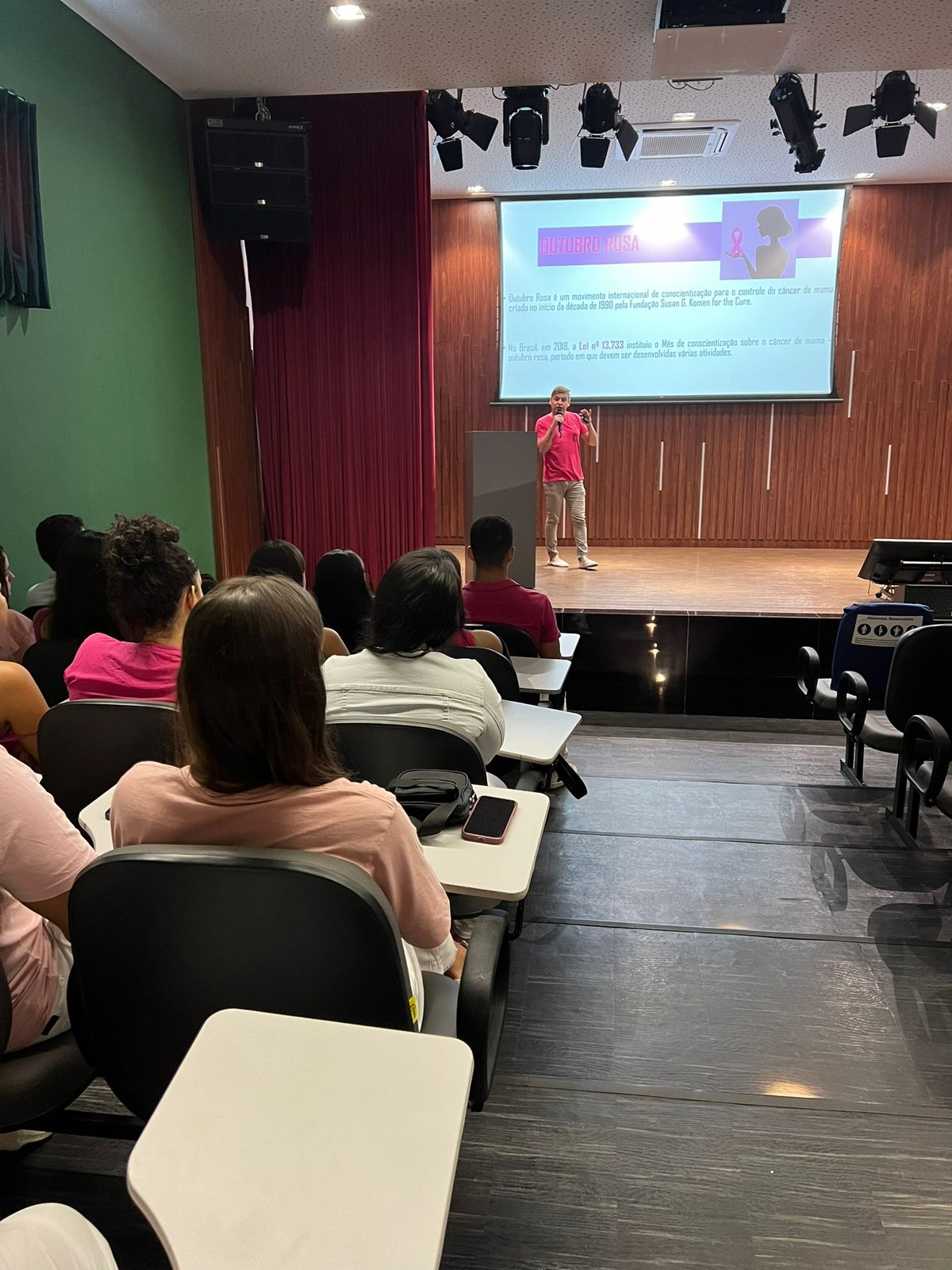 O evento teve como objetivo principal promover a conscientização sobre a importância do autoexame, da mamografia regular e das visitas periódicas ao médico. Durante a palestra, o professor também abordou a desmistificação do tratamento, sintomas e fatores de risco, além de oferecer apoio emocional e psicológico às pessoas afetadas pela doença.