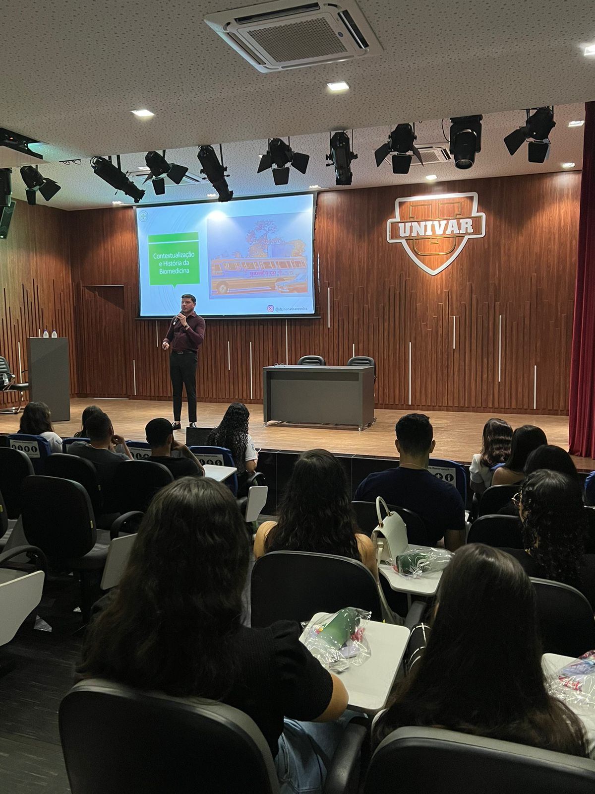 No dia 05/11, o curso de Biomedicina do Centro Universitário do Vale do Araguaia organizou uma palestra com foco nas habilitações e na ética profissional dos biomédicos. O evento ocorreu no auditório do UNIVAR e contou com a presença de mais de 100 participantes, entre acadêmicos e profissionais da área. Representando o Conselho Regional de Biomedicina da 3ª Região (CRBM-3), estiveram presentes a Dra. Roumayne Lopes, vice-presidente do conselho, e o Dr. Jhonathan Rocha, diretor, ambos especialistas em temas fundamentais para o exercício responsável da Biomedicina.