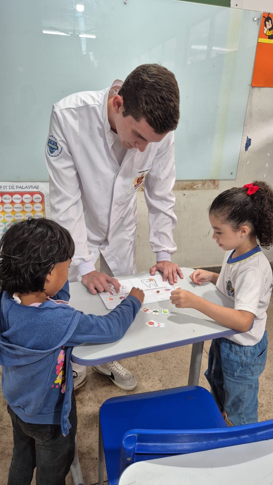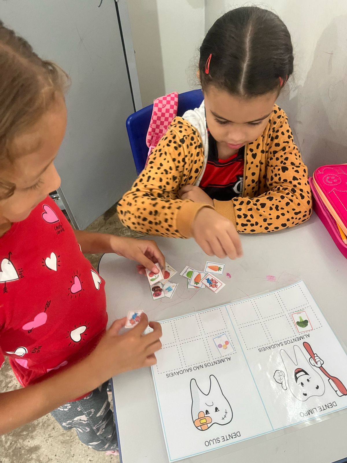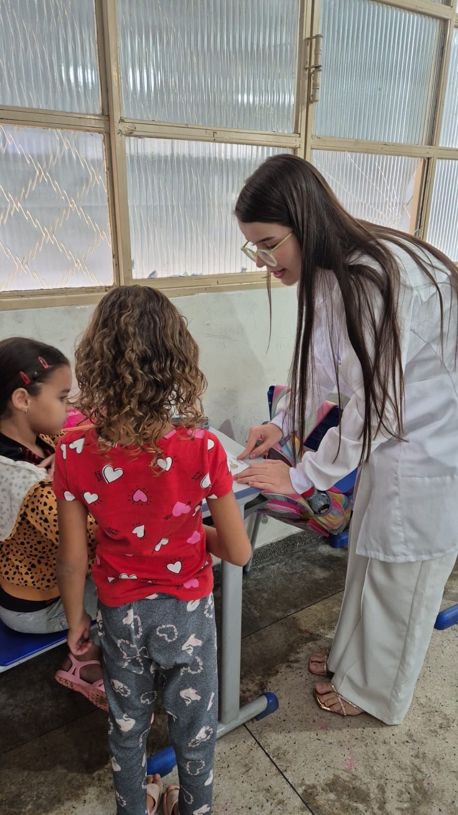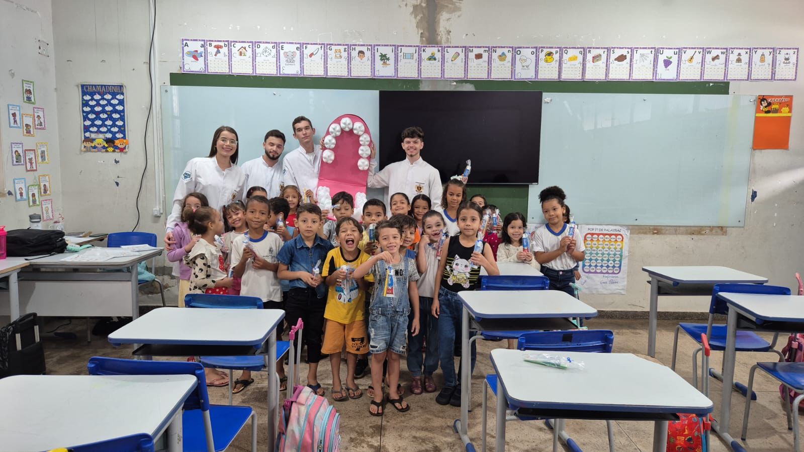 Durante o período vespertino, os acadêmicos promoveram atividades lúdicas e educativas, com linguagem acessível e adaptada ao público infantil. As crianças participaram de dinâmicas, aprenderam a maneira correta de escovar os dentes, o uso adequado do fio dental e a importância de uma alimentação equilibrada. Ao final, receberam kits com escova e pasta de dente, reforçando o compromisso do projeto com a prática além da teoria.