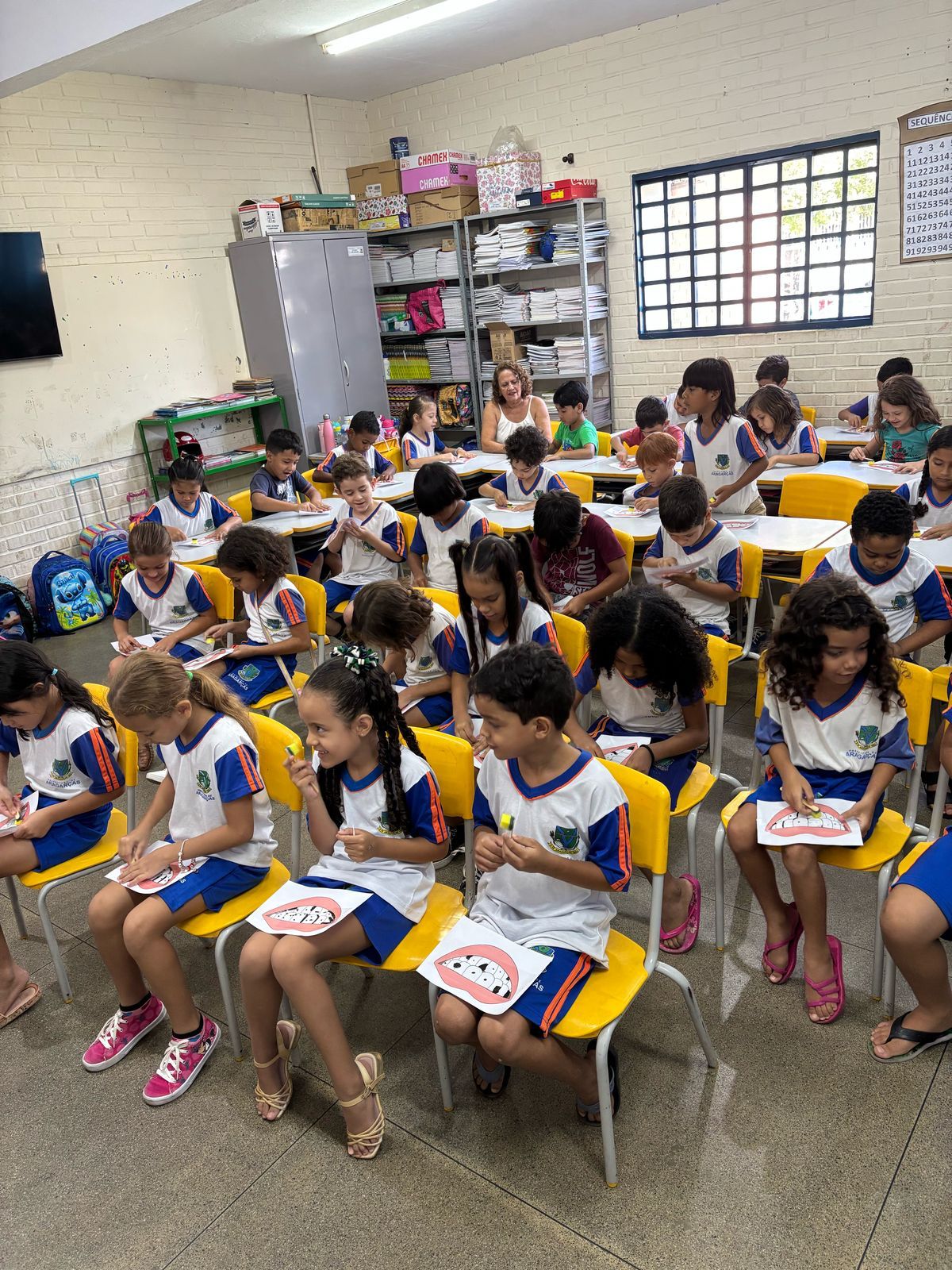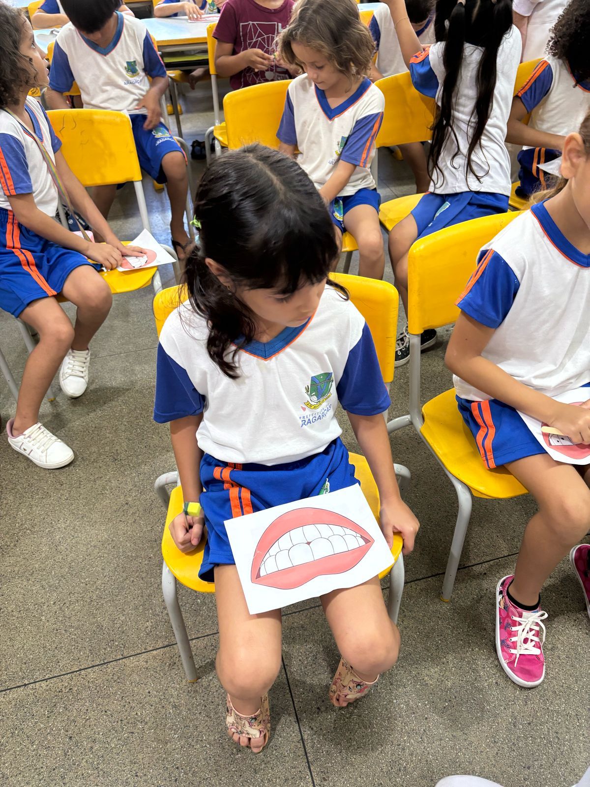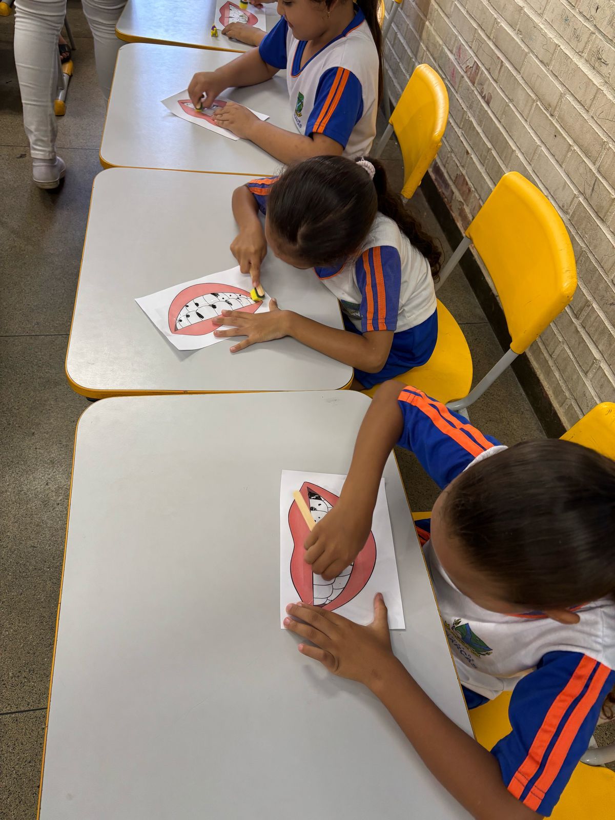 Durante a palestra educativa, os acadêmicos abordaram temas essenciais, como a técnica correta de escovação, o uso do fio dental, a importância da higiene oral após as refeições e antes de dormir, além da influência da alimentação na saúde bucal. Para tornar as explicações mais acessíveis, foram utilizados materiais confeccionados pelos próprios acadêmicos, como uma boca gigante, uma escova e um tubo de creme dental em tamanho grande, que ajudaram na demonstração prática.