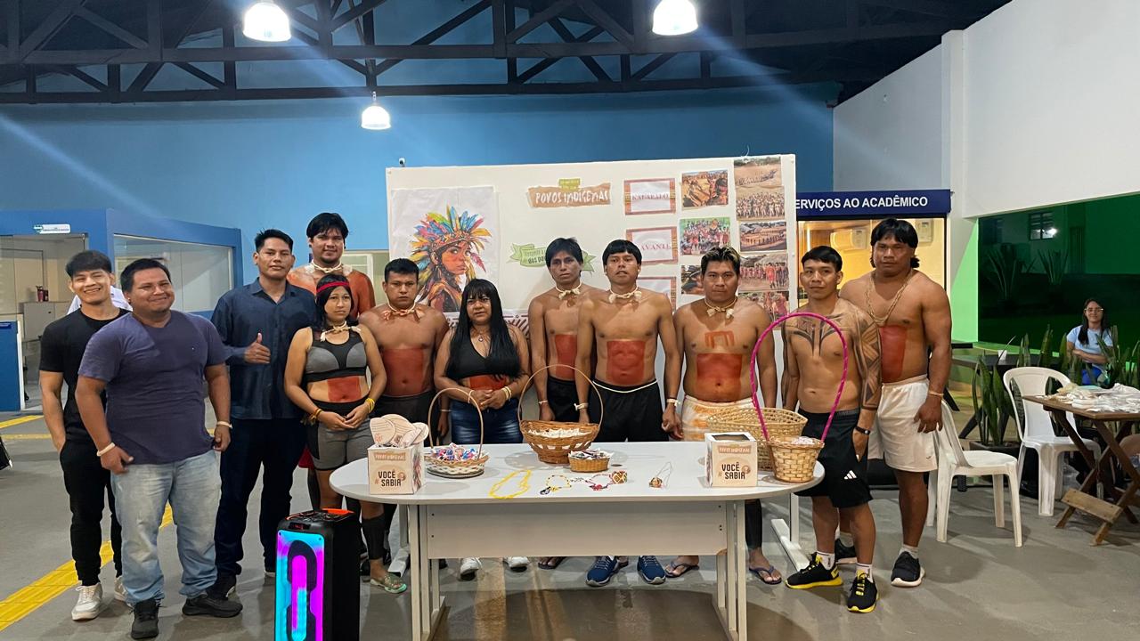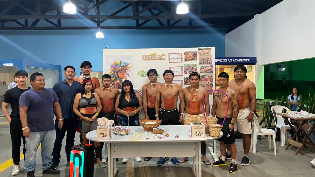 No dia 15/04, o Pátio do UNIVAR se transformou em um espaço de celebração cultural durante o intervalo noturno. Acadêmicos indígenas do curso de Pedagogia realizaram uma apresentação especial com materiais e expressões culturais dos povos originários. A ação integra o projeto de extensão “Círculo de Saberes: fortalecendo a trajetória dos acadêmicos indígenas no curso de Pedagogia”, coordenado pelos docentes Laura Annyelba e Wcleverson Batista, com o apoio da coordenação do curso.