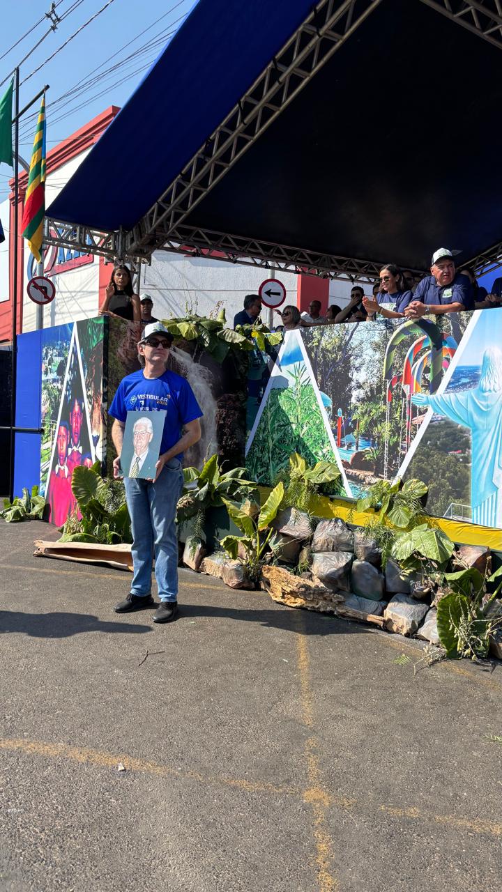 Na linha de frente do desfile estavam o Reitor Marcelo Soler, que carregava o quadro de seu pai e fundador do UNIVAR, Osvaldo Soler; o Pró-reitor de Inovação, Tecnologia e Internacionalização, Marcelo Soler Filho, com o retrato da avó Ivoni Soler; o companheiro do reitor, Frederico Borges; e a nora Karine Batista, que juntos levaram a faixa da família Soler em homenagem à Barra do Garças.