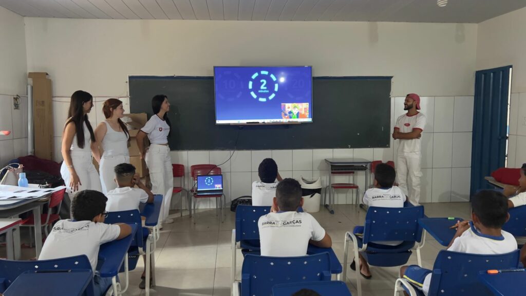 A atividade foi pensada a partir da necessidade de fortalecer hábitos corretos de higiene bucal de forma atraente e interativa para crianças e pré-adolescentes. Durante a ação, os alunos assistiram a um vídeo educativo sobre escovação e cuidados com dentes e gengivas, seguido da apresentação de slides ilustrativos que mostravam diferenças entre gengivas saudáveis e inflamadas.