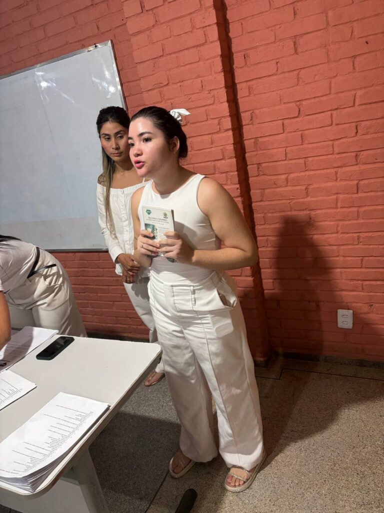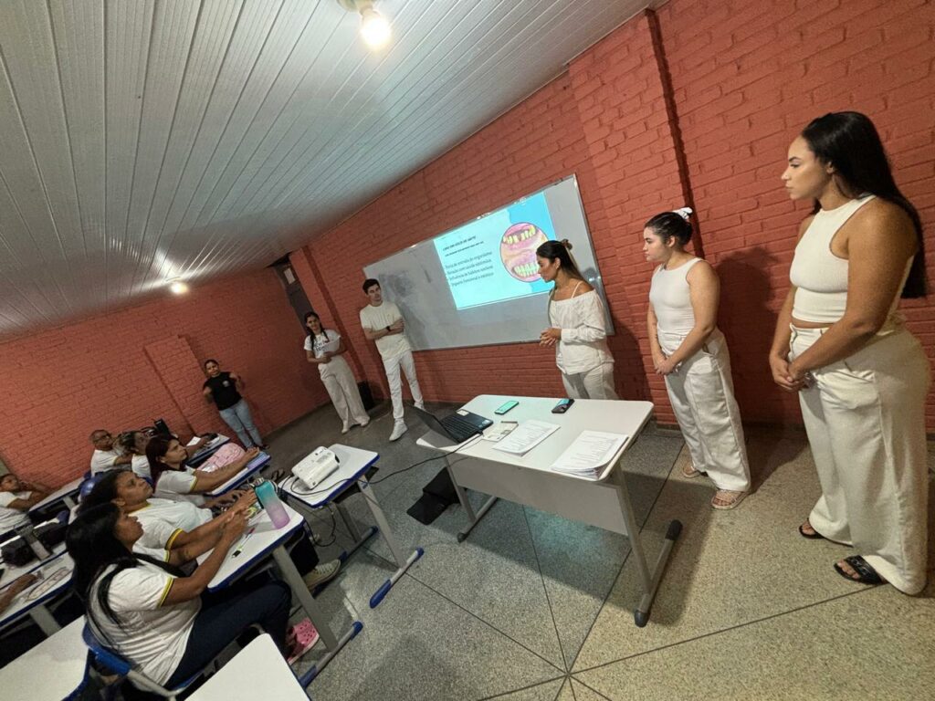 Acadêmicos do curso de Odontologia do UNIVAR realizaram, no dia 15 de abril de 2026, uma importante ação de conscientização voltada à saúde bucal na Escola Estadual de Jovens e Adultos (EJA), em Aragarças (GO). A atividade aconteceu no período noturno, sob orientação da docente Me. Natalina Galdeano Abud Chaud.