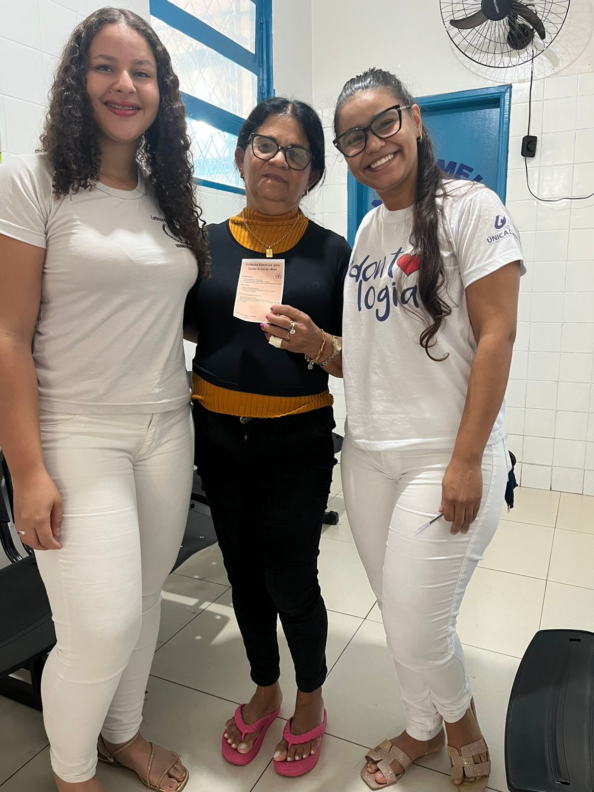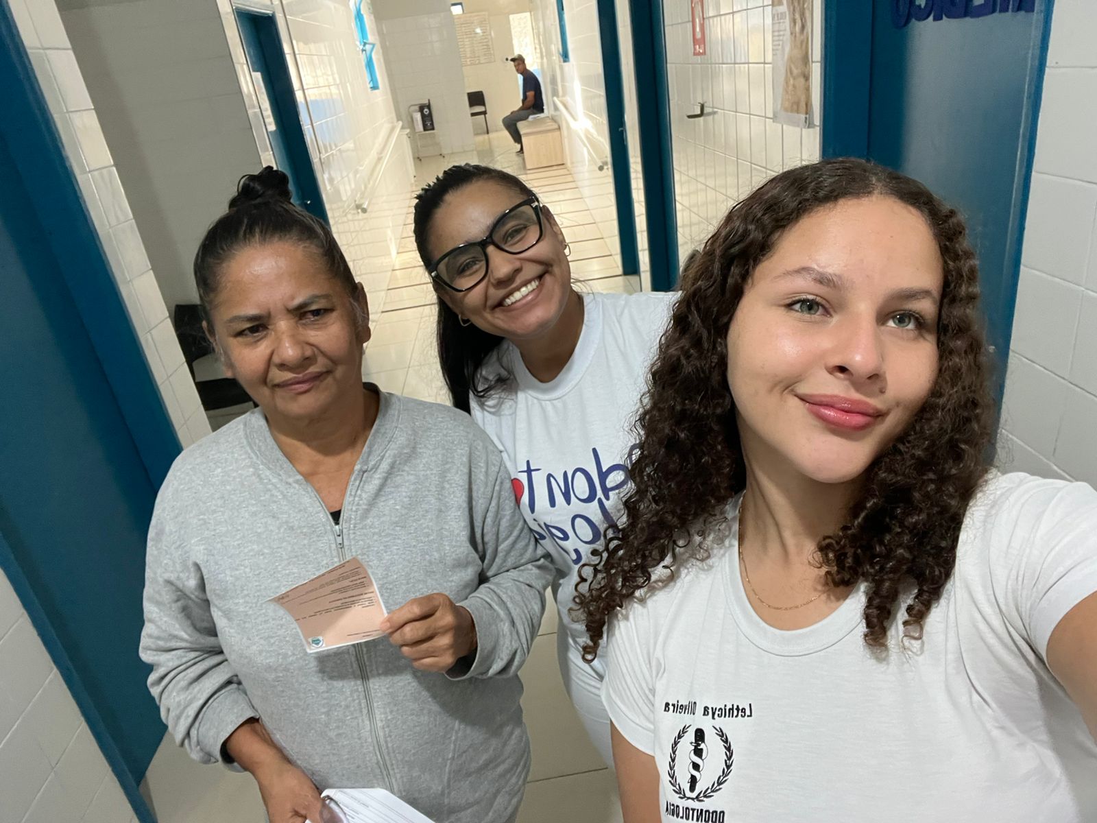 Hoje, 02/06, acadêmicas do 7º semestre do curso de Odontologia realizaram um projeto de extensão na Unidade Básica de Saúde (UBS) do bairro São Sebastião. A ação foi organizada pelas acadêmicas Lethicya Oliveira Goulart e Yasmin Kaieny Angelo Moura, com a orientação da docente Me. Natalina Galdeano Abud Chaud, e teve como objetivo promover a saúde bucal entre o público idoso da comunidade.