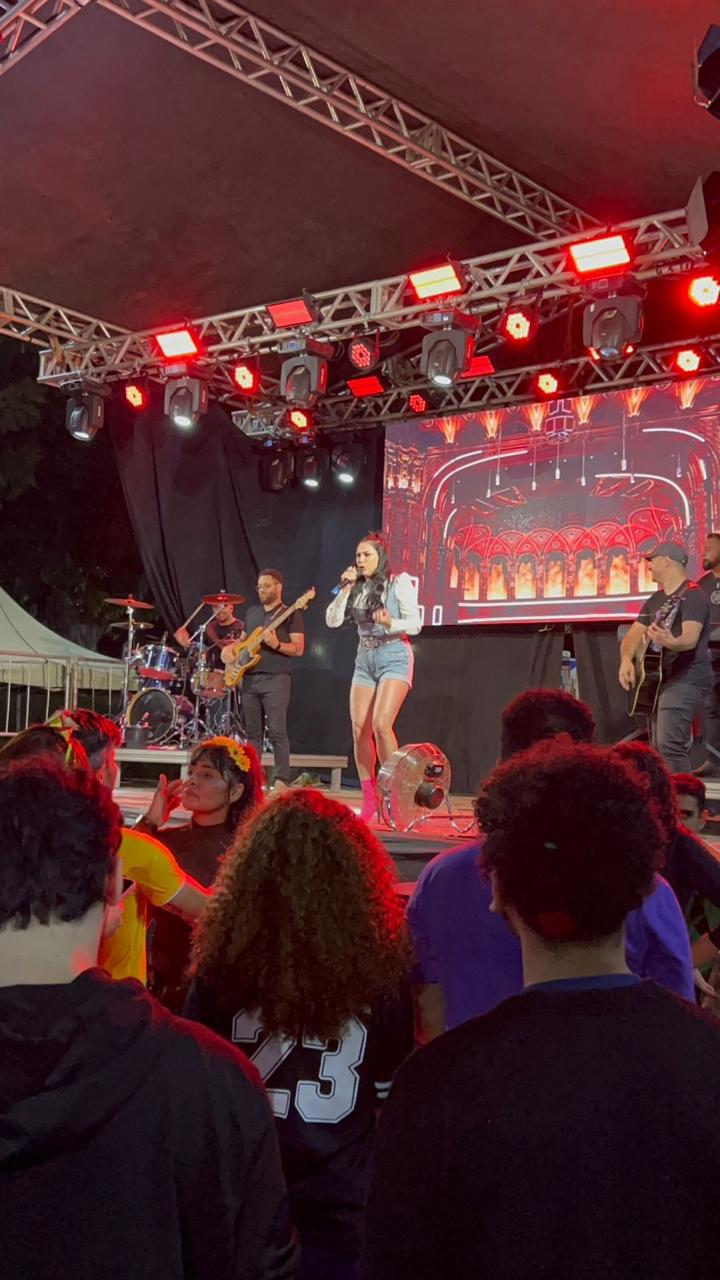O evento foi realizado na quadra da instituição e reuniu centenas de acadêmicos que aproveitaram uma programação repleta de atrações. O destaque da noite foi o show da cantora Marcela Mares, que animou o público com um repertório vibrante e cheio de hits, garantindo energia e muita interação com os presentes.