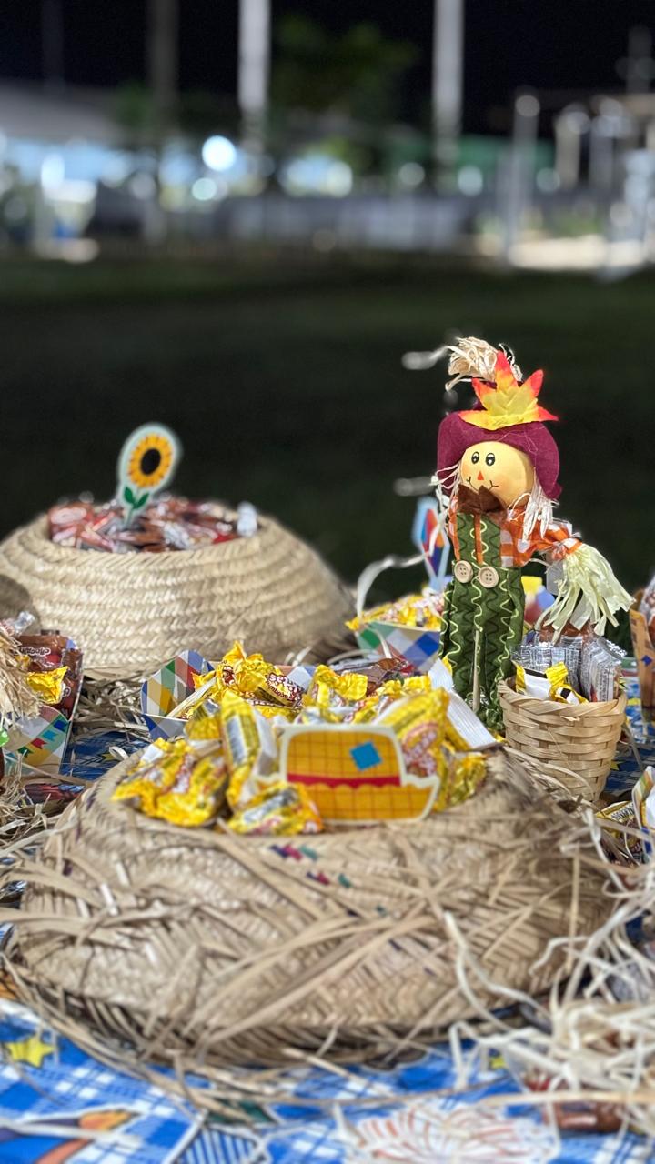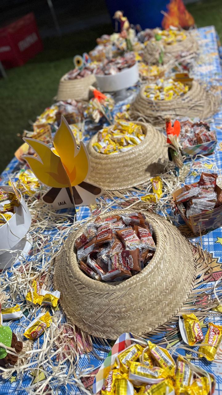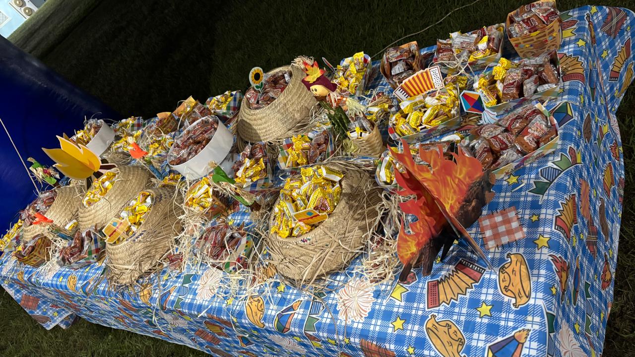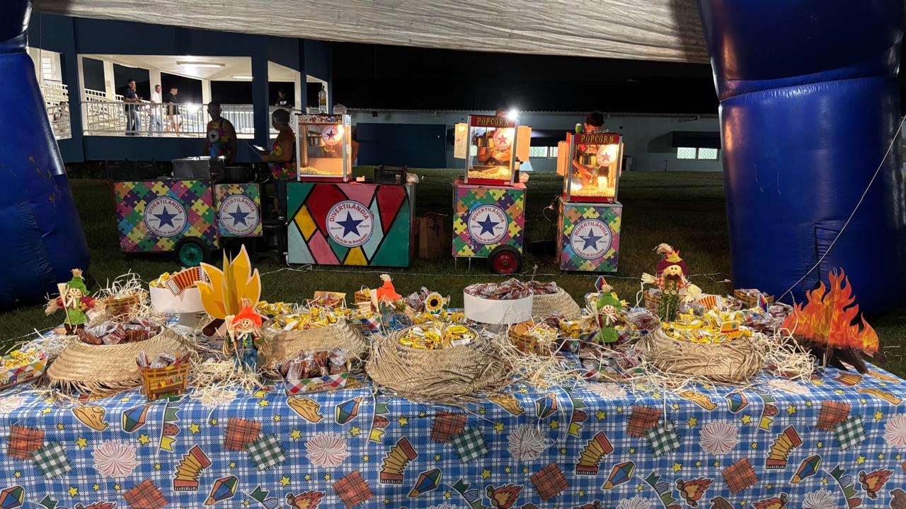 Para completar a noite, os participantes puderam saborear guloseimas tradicionais como pé de moleque e paçoca, além de muita pipoca, tudo à vontade para quem participou da comemoração.