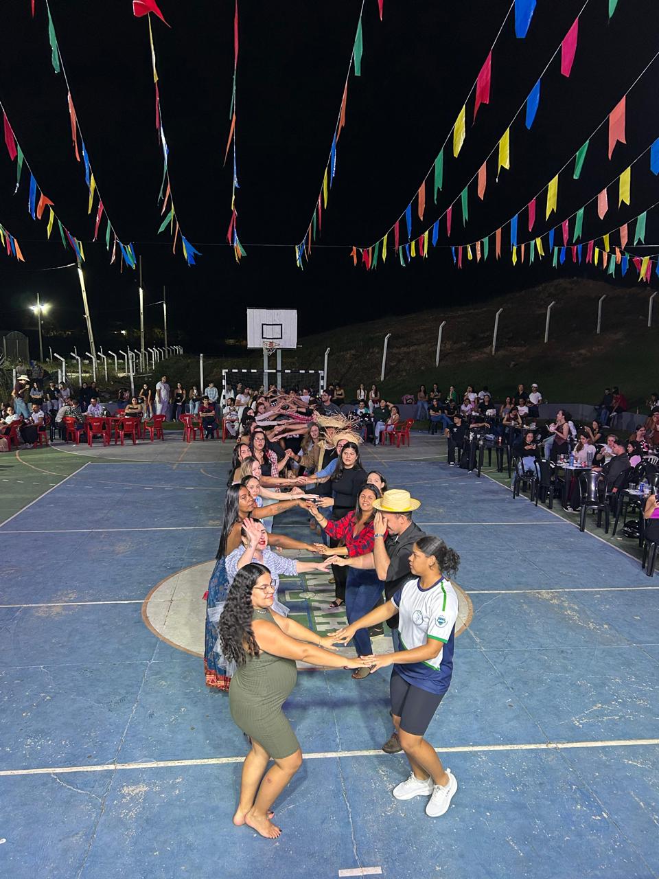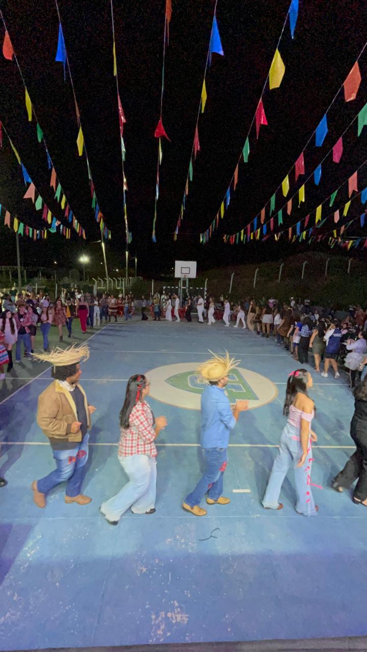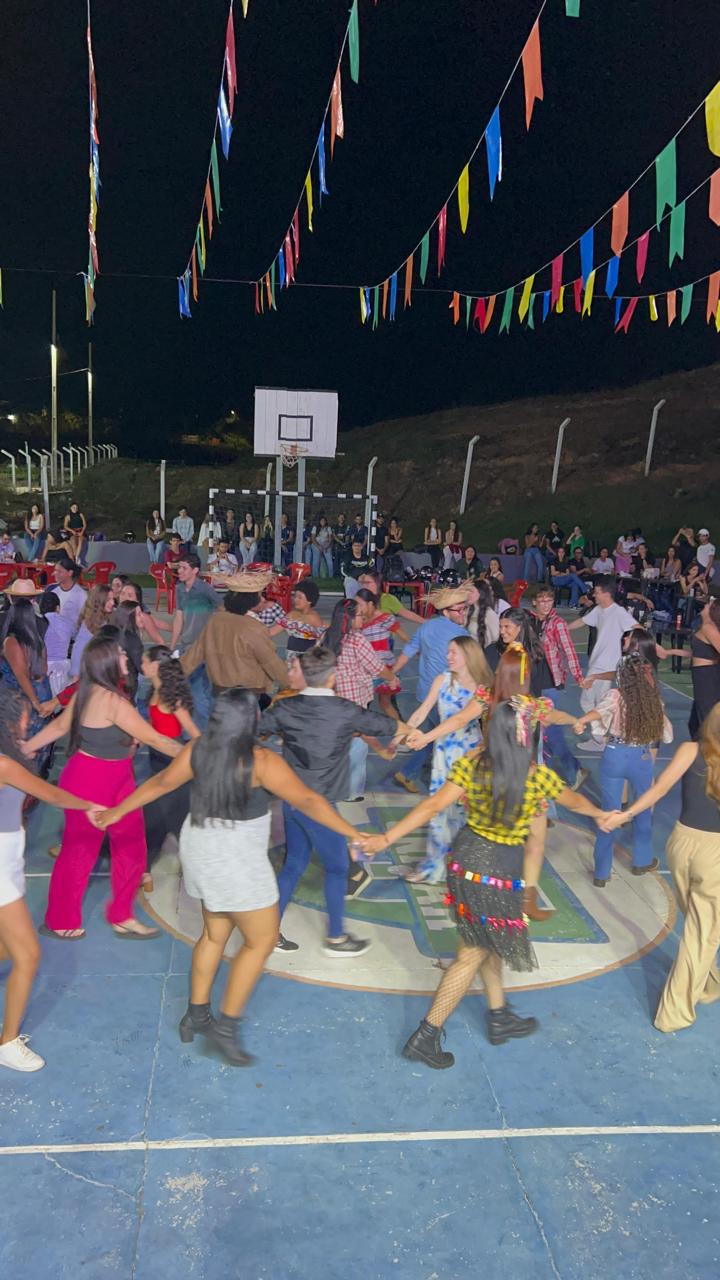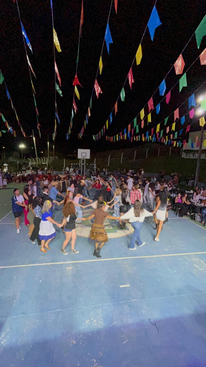 A festa ainda contou com a tradicional quadrilha, que reuniu acadêmicos de diversos cursos em uma divertida dança típica, resgatando o espírito das festas juninas com muita cor e alegria.